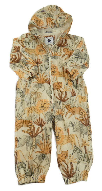 Béžová šusťáková jarní kombinéza se zvířaty a kapucí