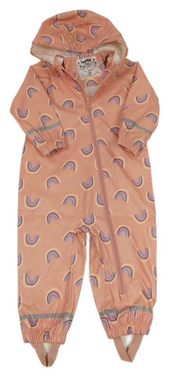Pudrová nepromokavá kombinéza s duhami a kapucí