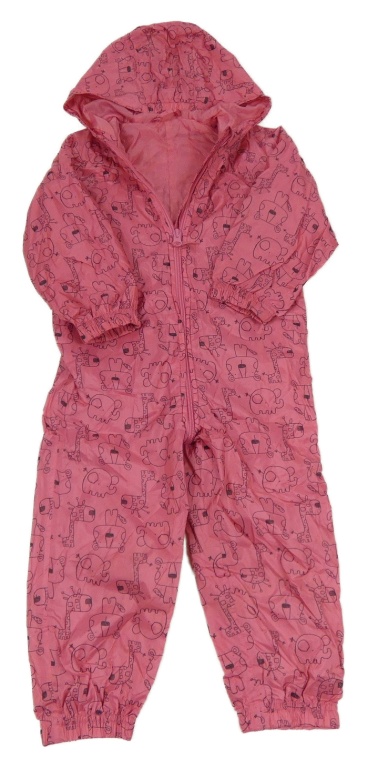 Tmavorůžová šusťáková jarní kombinéza se zvířaty a kapucí Lily & Dan