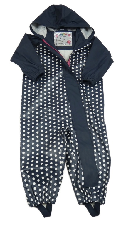 Tmavomodro-bílá puntíkatá voděodolná jarní kombinéza s kapucí Lupilu
