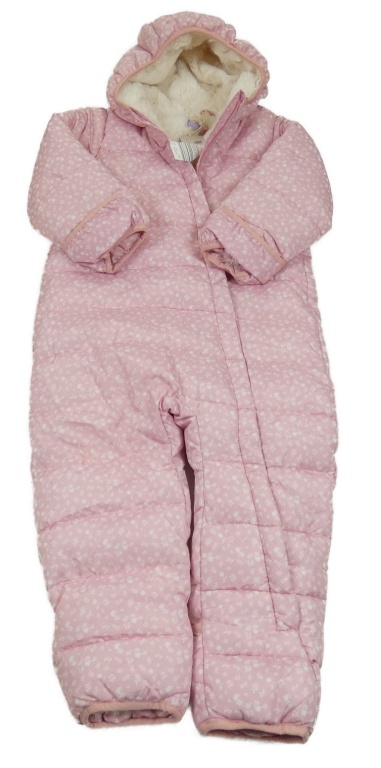 • Nové - růžová prošívaná šusťáková zimní kombinéza s kytičkami a lístečky a kapucí Lily & Dan