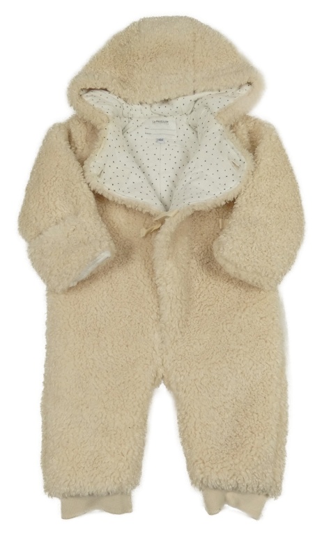 • Světlebéžová huňatá podšitá kombinéza s kapucí