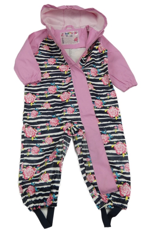 • Růžovo-tmavomodro-bílá pruhovaná květovaná voděodolná jarní kombinéza s kapucí Lupilu
