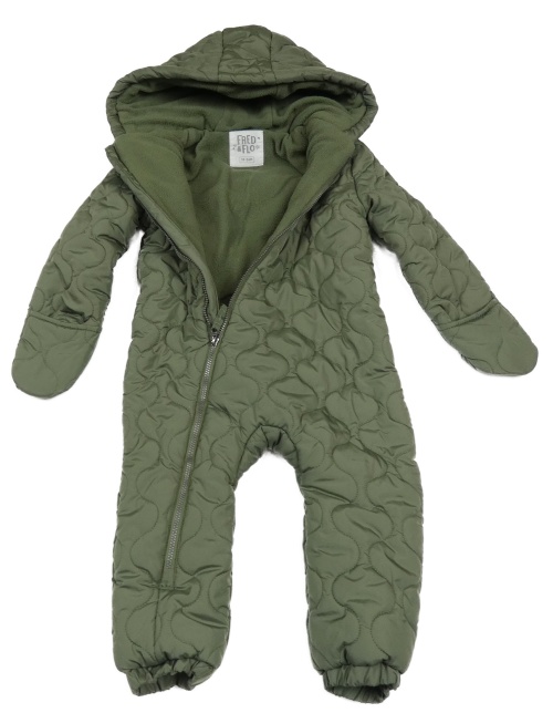• Khaki prošívaná šusťáková zimní kombinéza s kapucí F&F