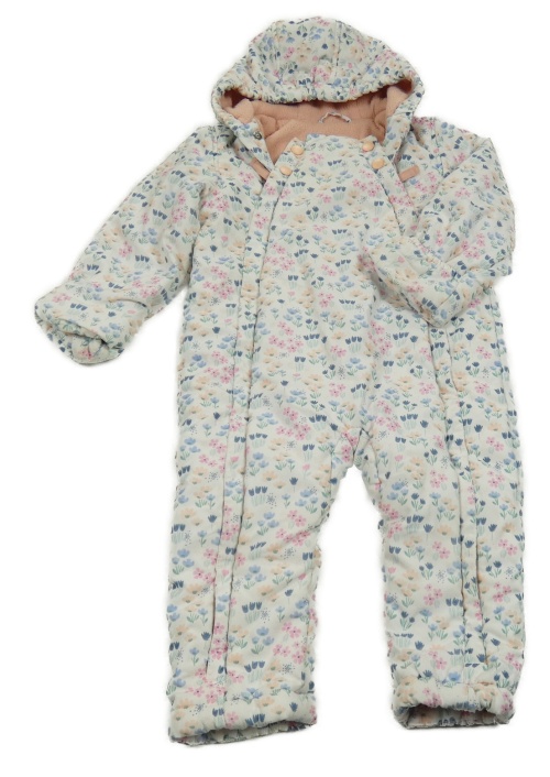 Bílá šusťáková zimní kombinéza s kytičkami a kapucí M&S