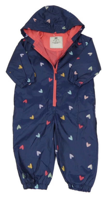 Tmavomodrá šusťáková jarní kombinéza se srdíčky a kapucí George