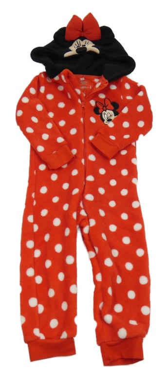 Červená puntíkatá chlupatá kombinéza s kapucí - Minnie Disney