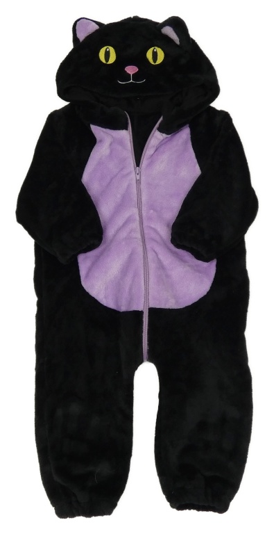 Kostým - Černo-lila chlupatá kombinéza s kapucí - kočka