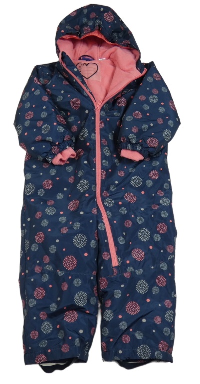 Tmavomodro-růžovo-šedá puntíkatá šusťáková zimní kombinéza s kapucí Lupilu
