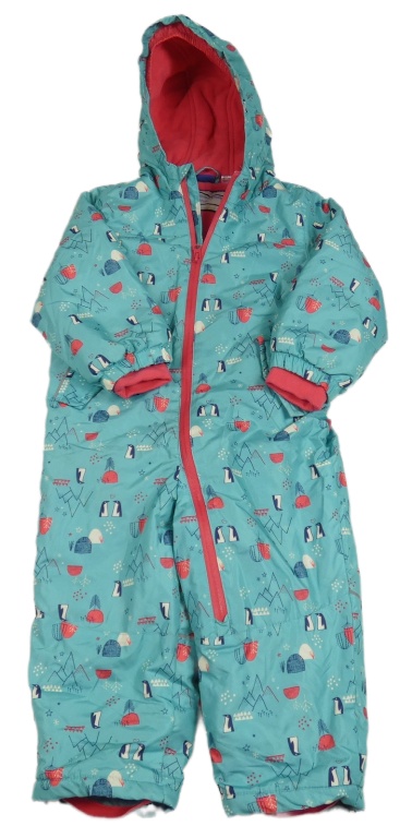 Modrozelená šusťáková zimní kombinéza s tučňáky a kapucí Lupilu