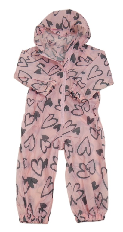 Světlerůžová šusťáková kombinéza se srdíčky a kapucí Dunnes