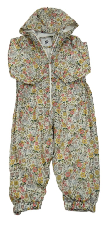 Smetanovo-barevná květovaná šusťáková podzimní kombinéza s kapucí Tu