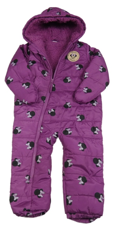 Borůvková prošívaná šusťáková zimní kombinéza s Minnie a kapucí Disney