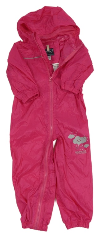 Tmavorůžová šusťáková funkční kombinéza s obláčky a kapucí REGATTA