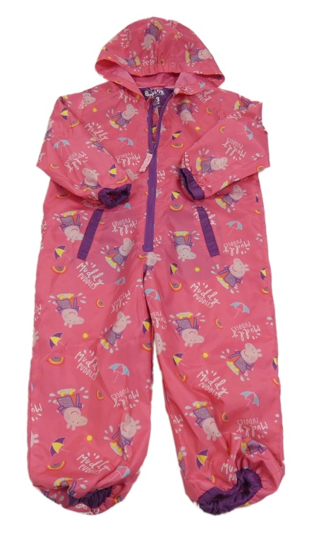 Tmavorůžovo/fialová šusťáková jarní kombinéza s Peppa Pig a kapucí