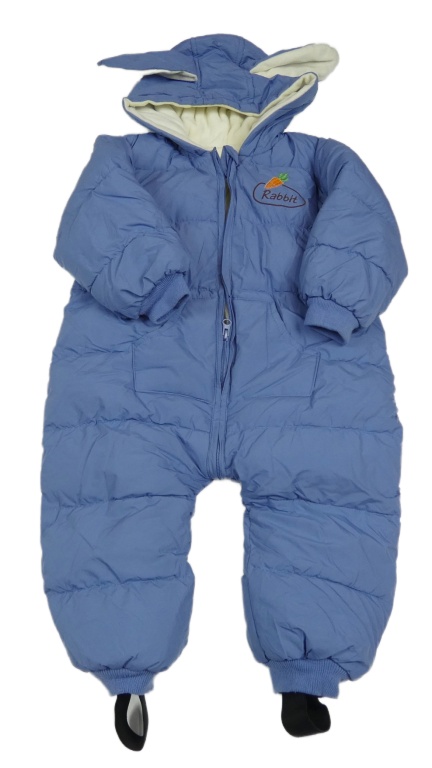 • Modrá prošívaná šusťáková zimní kombinéza s mrkvičkou a kapucí s oušky