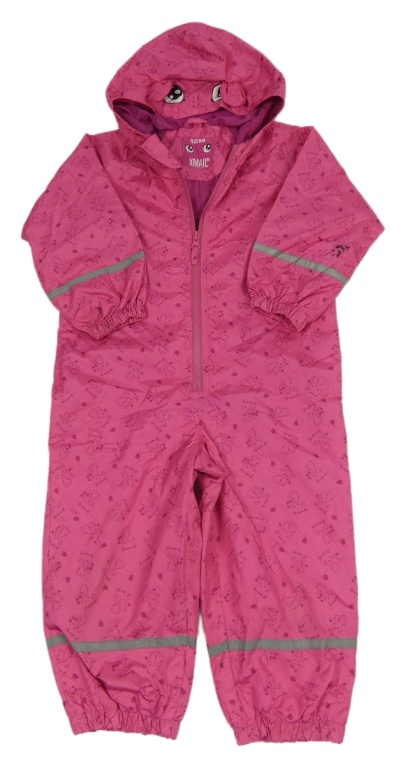 Tmavorůžová šusťáková jarní kombinéza s kočičkami a kapucí X-MAIL
