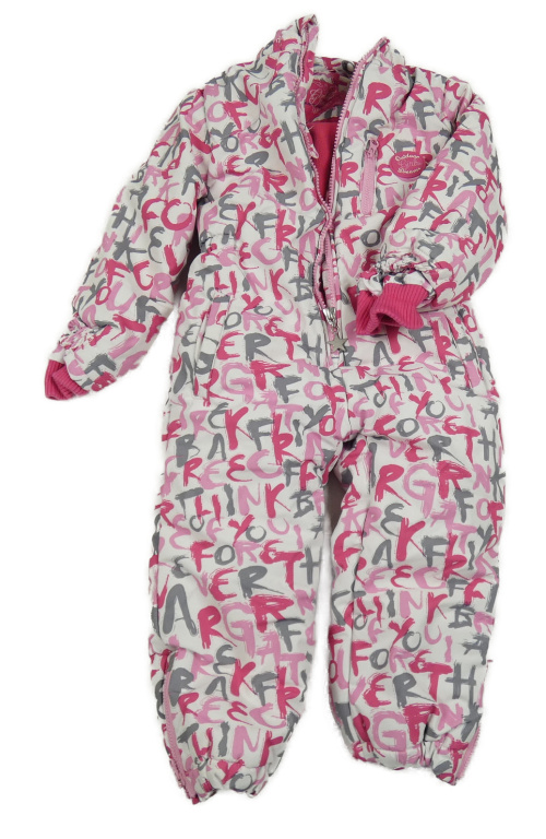 Bílo-růžovo-šedá šusťáková zimní kombinéza s písmeny KANZ