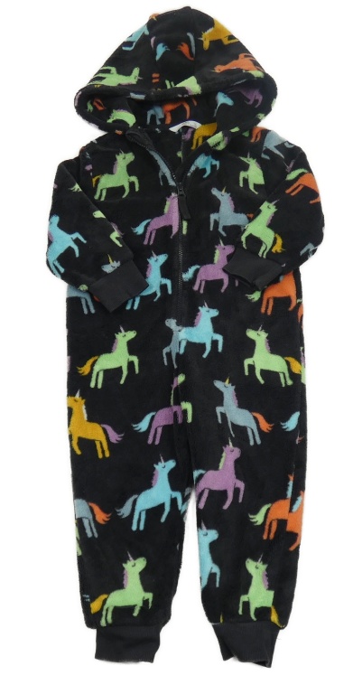 Antracitová plyšová kombinéza s jednorožci a kapucí M&S