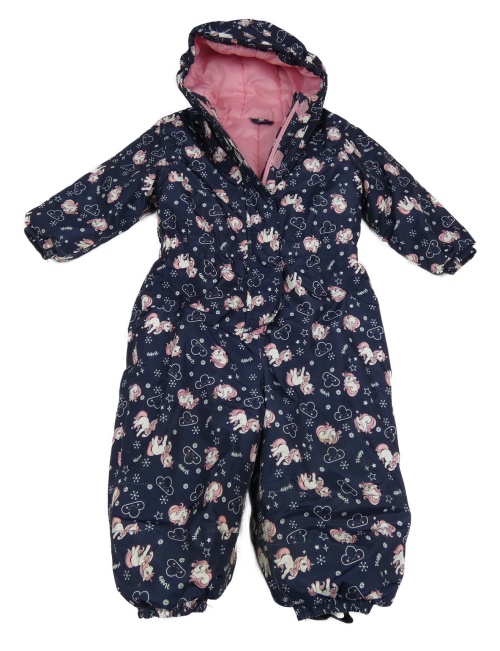 • Tmavomodrá šusťáková zimní kombinéza s jednorožci a obláčky a kapucí Kiki&Koko