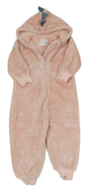 Světlerůžová chlupatá kombinéza s kapucí - dinosaurus Next