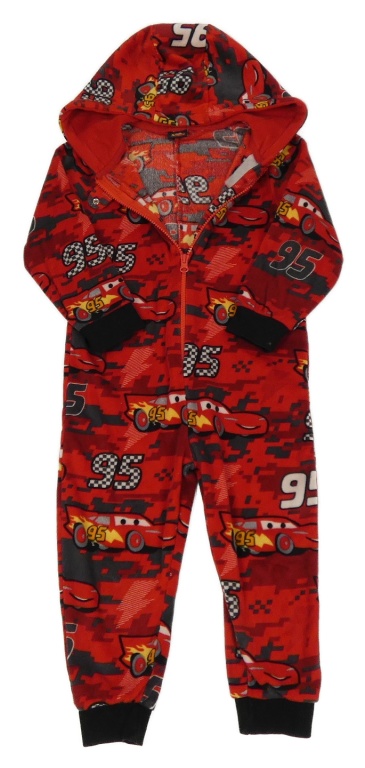 • Červeno-šedá vzorovaná sametová kombinéza s Cars a kapucí Disney