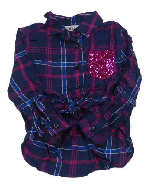 Tmavomodro-modro-fuchsiová kostkovaná halenka s kapsou z flitrů M&Co.