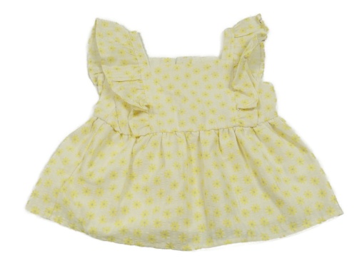 Světležlutá pruhovaná halenka s květinami a volánky