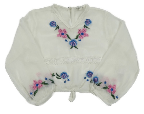 Smetanová šifonová průhledná crop halenka s výšivkami květin River Island