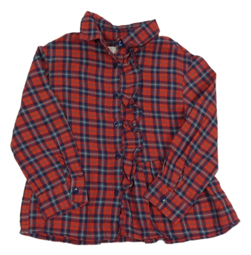 Červeno-tmavomodro-petrolejová kostkovaná halenka s volánem Zara