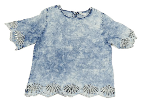 Modro-bílá batikovaná halenka riflového vzhledu s děrováním Jessica Simpson