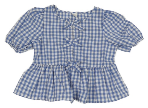 Modro-bílá kostkovaná tunika s mašlemi SHEIN