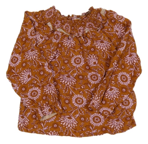 Hnědá halenka s kytičkami a volánkem Tu