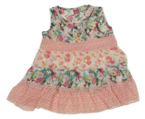 Smetanovo-růžová šifonová tunika s kytičkami a motýlky Kiki&Koko