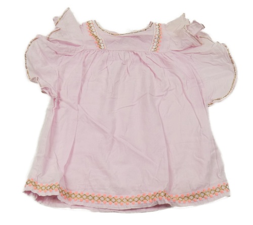 Světlerůžová halenka s volánky a barevnými pruhy