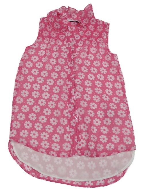 Tmavorůžovo-bílá květovaná puntíkatá šifonová propínací letní tunika M&S