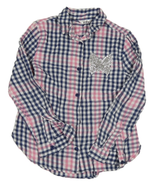 Tmavomodro-bílo-růžová kostkovaná halenka s motýlkem s flitry M&Co