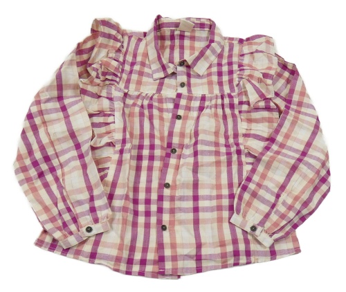 Světlerůžovo-purpurová kostkovaná halenka s volánky