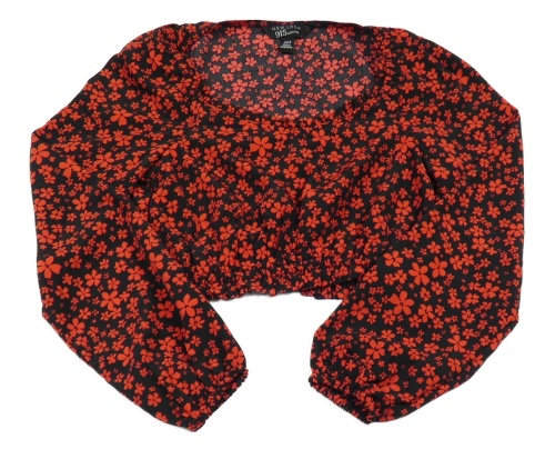 Červeno-černá květovaná crop halenka New Look