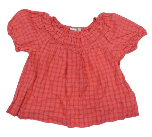Jahodovo-červená kostkovaná crop halenka s krajkou GAP