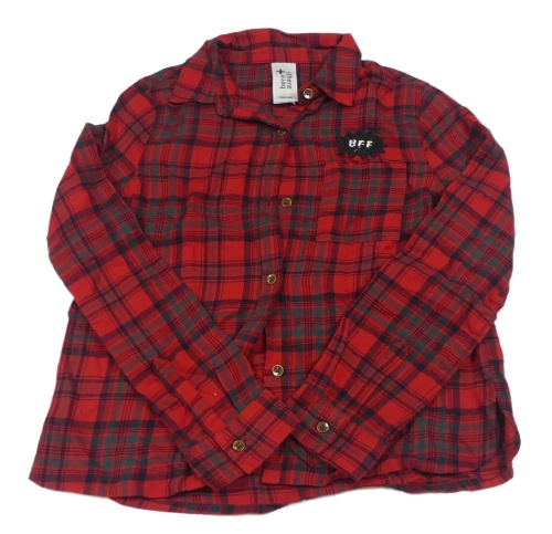 Červeno-černo-smaragdová kostkovaná halenka s nášivkou s flitry C&A