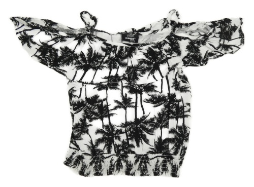 Bílo-černá crop halenka s palmami a volánkem a volnými rameny Page one young