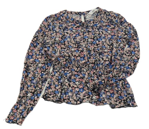 Černá kytičkovaná halenka s mašlí H&M