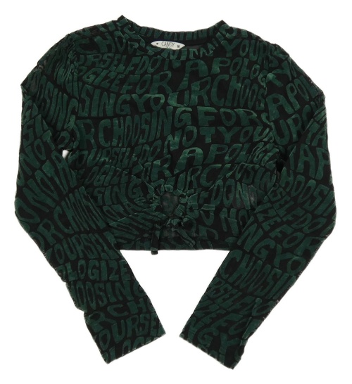 Černo-tmavozelené tylovo/sametové crop triko s nápisy Candy