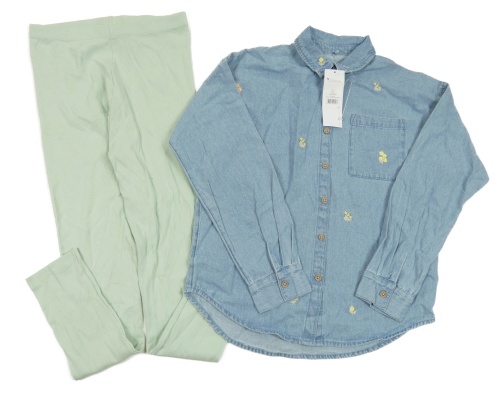 Nové - 2set - Modrá riflová halenka s výšivkami květin + světlezelené žebrované legíny George