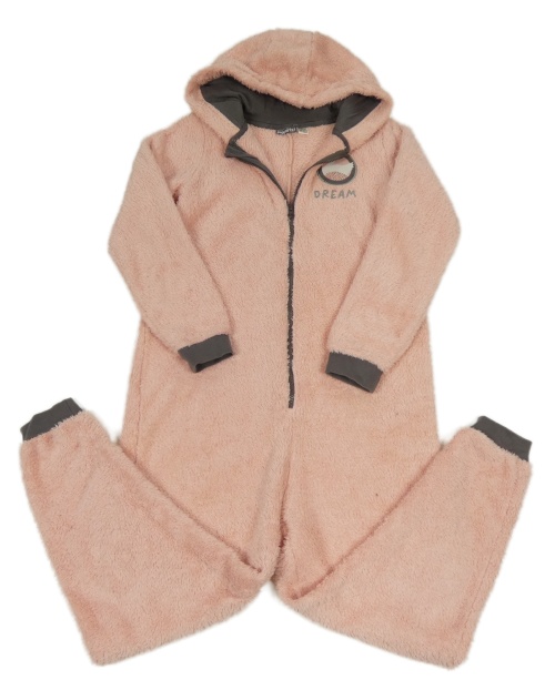 Světlerůžová chlupatá kombinéza s labutí a kapucí Pepperts