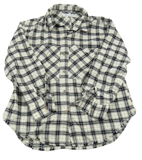 Smetanovo-černo-šedá kostkovaná lněná halenka Zara