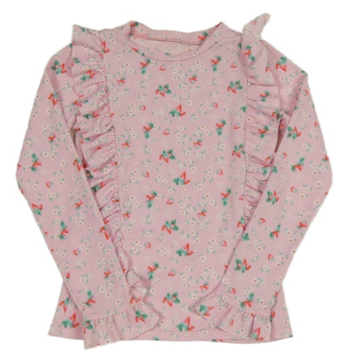 Světlerůžová vzorovaná halenka s kytičkami a volánky