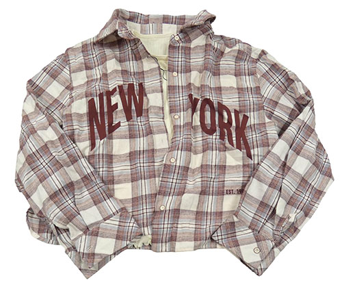 Bílo-víovo-modrá kostkovaná crop halenka s nápisem a všitým tričkem Zara