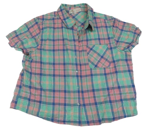 Růžovo - modro - zelená kostkovaná halenka